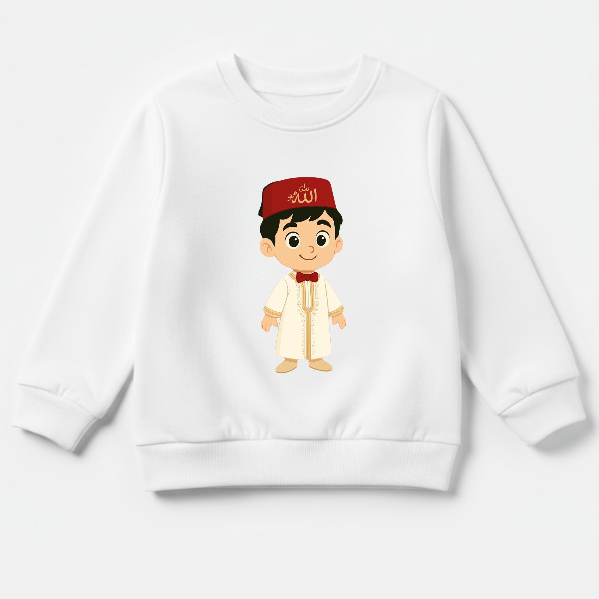 Sweatshirt Enfant – Garçon en Jebba Blanche avec Chéchia Rouge