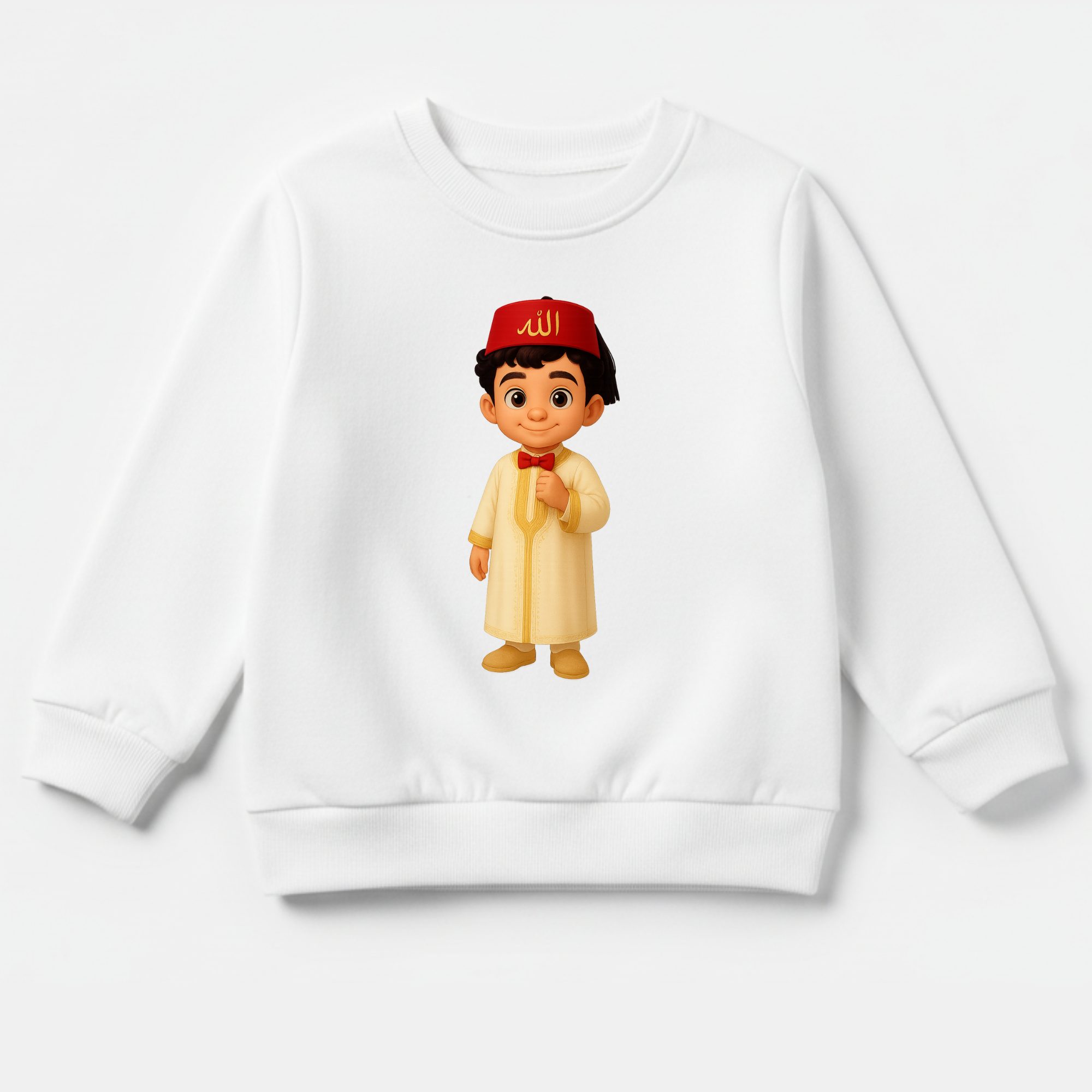 Sweatshirt Enfant – Garçon en Tenue Traditionnelle Beige avec Chéchia
