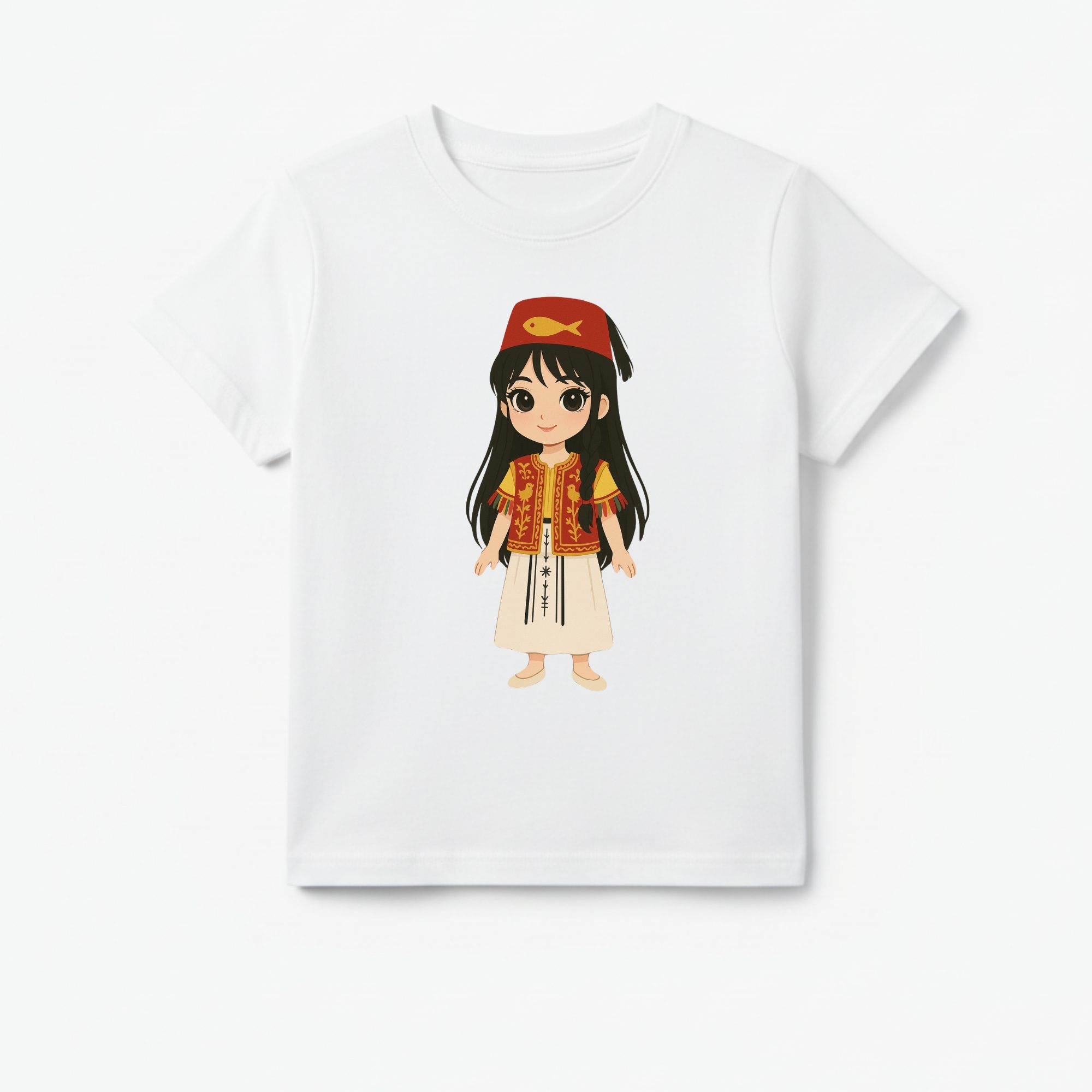 T-shirt Enfant Tunisien – Fille en Tenue Orientale Rouge et Or