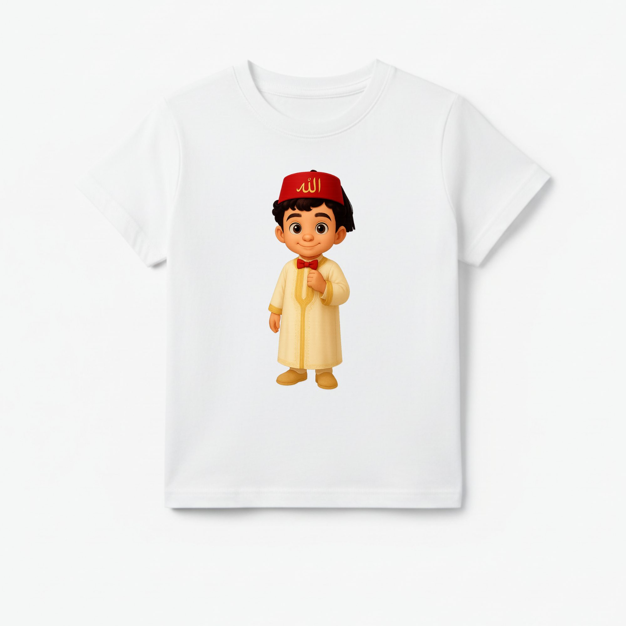 T-shirt Enfant Tunisien – Garçon en Jebba Beige et Chechia Rouge